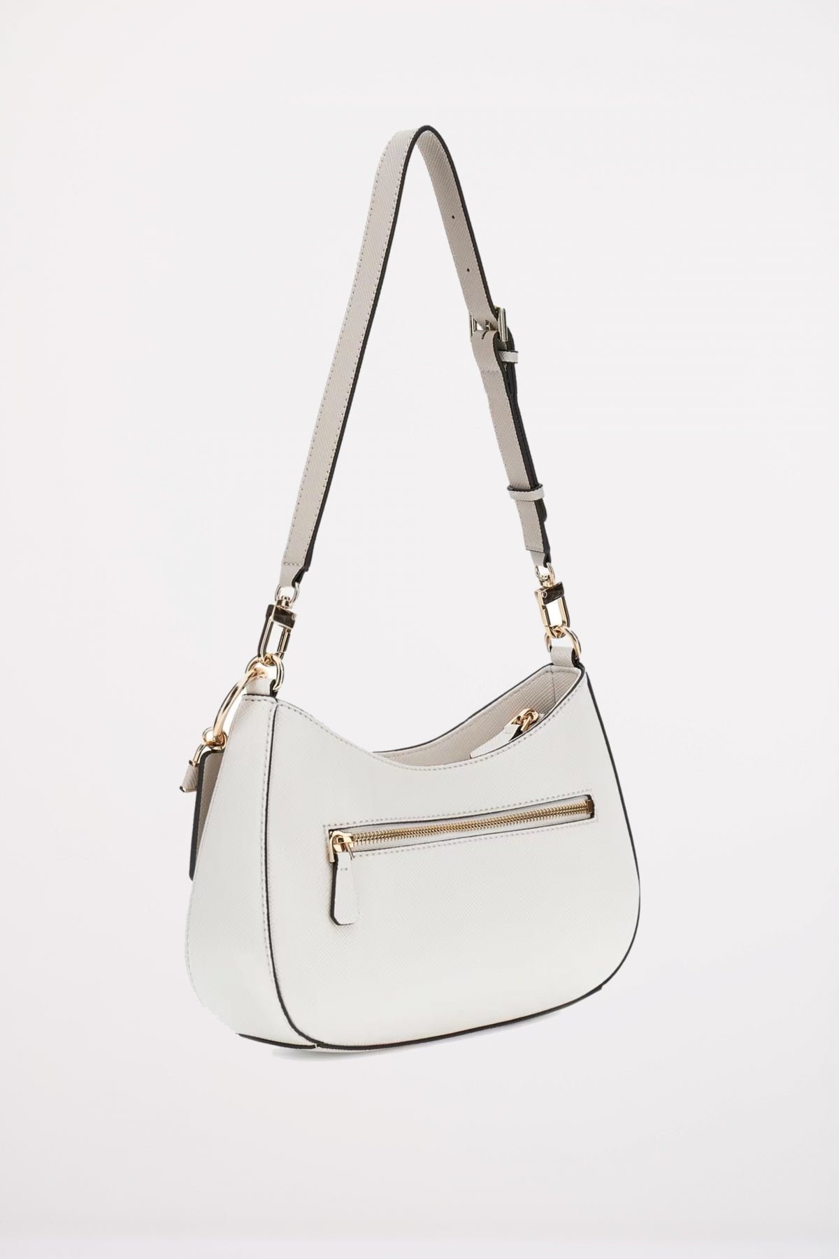 \nEl bolso Noelle II Top Zip Shou de Guess es un accesorio versátil que fusiona funcionalidad con un estilo elegante y distintivo. Confeccionado en piel sintética de alta calidad con un sofisticado motivo saffiano, este bolso se cierra con cremallera, garantizando la seguridad de tus pertenencias. Destacan sus herrajes en tono dorado pálido, el charm del logo desmontable y el logotipo triangular frontal. Su diseño incluye un bolsillo posterior con cremallera y ofrece múltiples opciones de transporte gracias a su asa regulable y desmontable, y una bandolera también regulable y desmontable, ideal para llevar tus esenciales con un toque de lujo sutil.