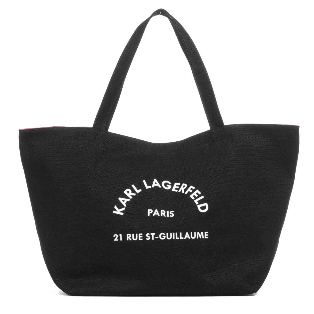 Este bolso tote de lona, con un diseño amplio y práctico,\ndestaca por el estampado del icónico logotipo Rue St-Guillaume, que aporta el\ninconfundible estilo de KARL. Con asas cómodas para el transporte, este bolso\nes perfecto para llevar todo lo que necesitas de manera organizada. El logotipo\ncon la dirección de KARL estampado en la parte delantera le da un toque\nexclusivo y moderno. Confeccionado en algodón de alta calidad, es un accesorio\nresistente y duradero, ideal para cualquier ocasión. Fabricado en India, este\nbolso combina estilo, funcionalidad y comodidad en un solo complemento.