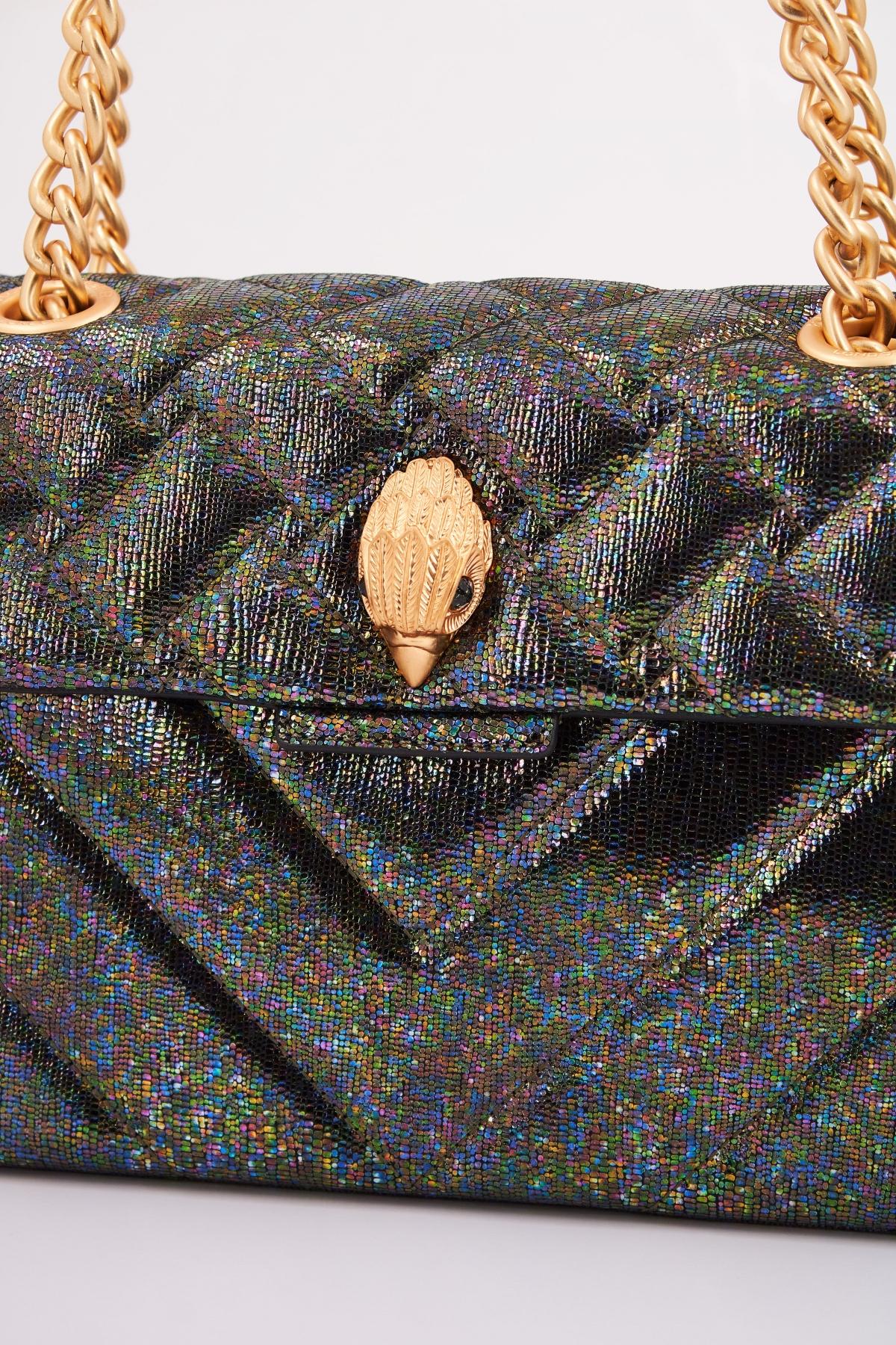 La elegante bolsa de KURT GEIGER LONDON combina un diseño atemporal con un toque moderno. Con un acabado brillante y texturizado, presenta una estructura acolchada que resalta su sofisticación. La cadena dorada proporciona un elegante contraste y versatilidad, perfecta para cualquier ocasión. Ideal para quienes buscan un accesorio que complemente su estilo con un aire chic.