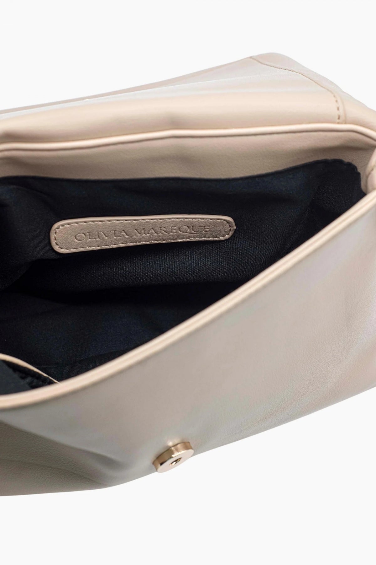 \nEste bolso de hombro mediano de OLIVIA MAREQUE es una pieza que fusiona estilo y funcionalidad, ideal para darle un toque distintivo a tu look diario. Confeccionado en piel sintética vegana y con una elegante construcción acolchada, presenta un diseño rectangular que se cierra discretamente con una solapa imantada. Su interior, organizado en dos compartimentos y adornado con un forro logotipado, ofrece espacio suficiente para tus imprescindibles, mientras que su cadena de 60 cm y los acabados metálicos plateados le confieren un aire sofisticado y versátil, combinable con diversas cadenas para adaptarse a tu estilo.