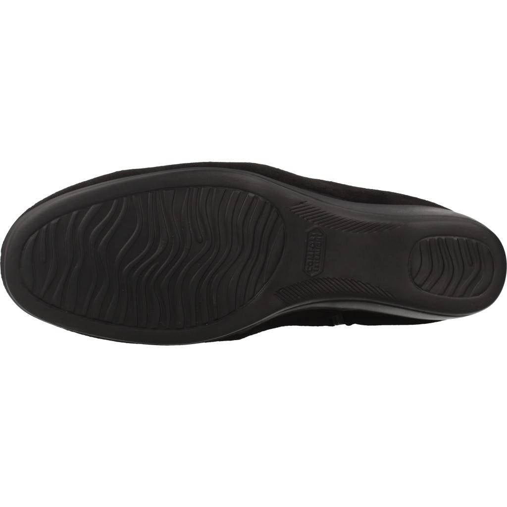Botines con cuña de la marca PINOSOS. Exterior en piel de color NEGRO con grabado. Con cremallera interior para facilitar el calce. Suela de goma.