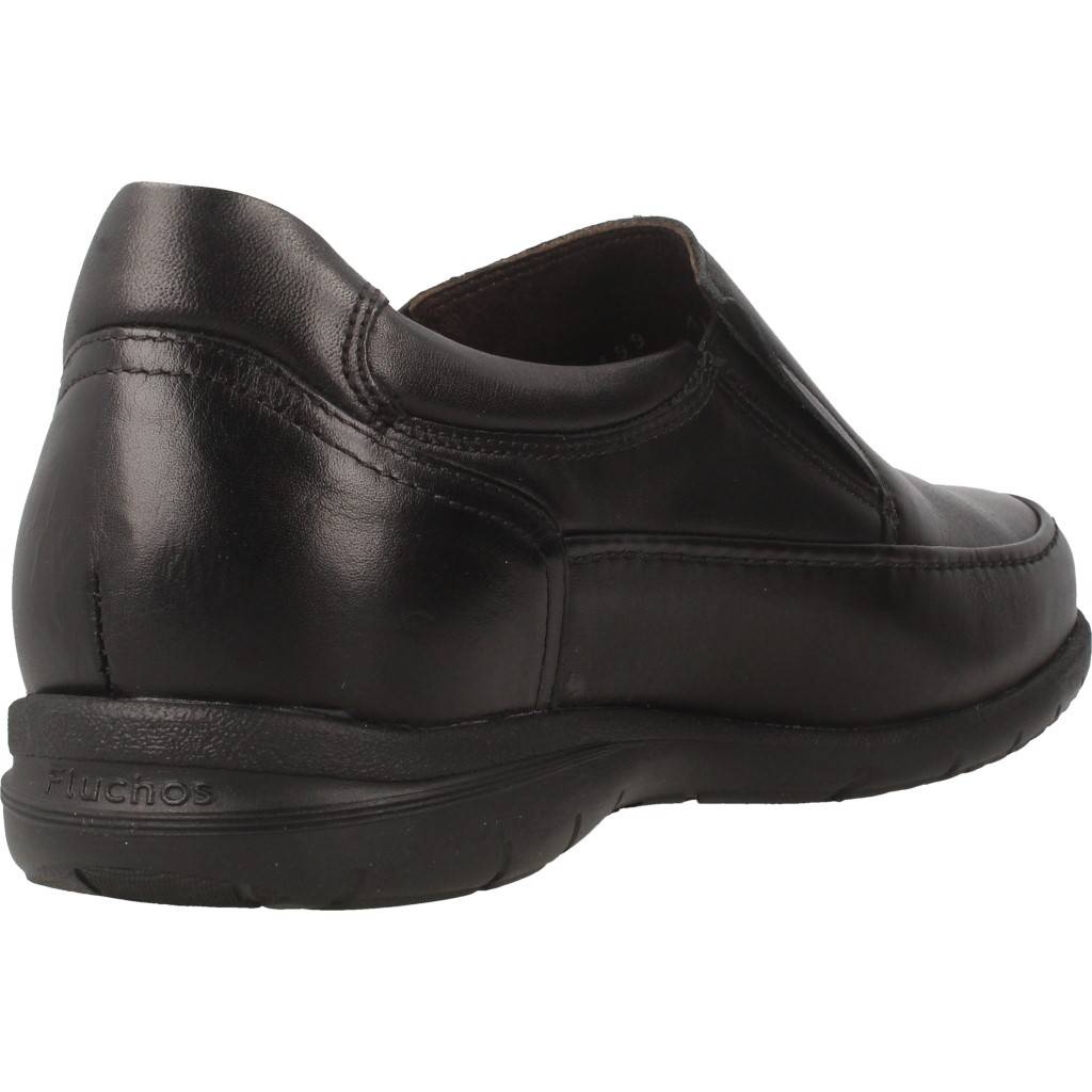 Mocasín de la marca FLUCHOS, modelo LUCA. Fabricado con pieles naturales de primera calidad, blandas y flexibles, con curtición libre de cromo, anti-alérgico y ecológico de color NEGRO.