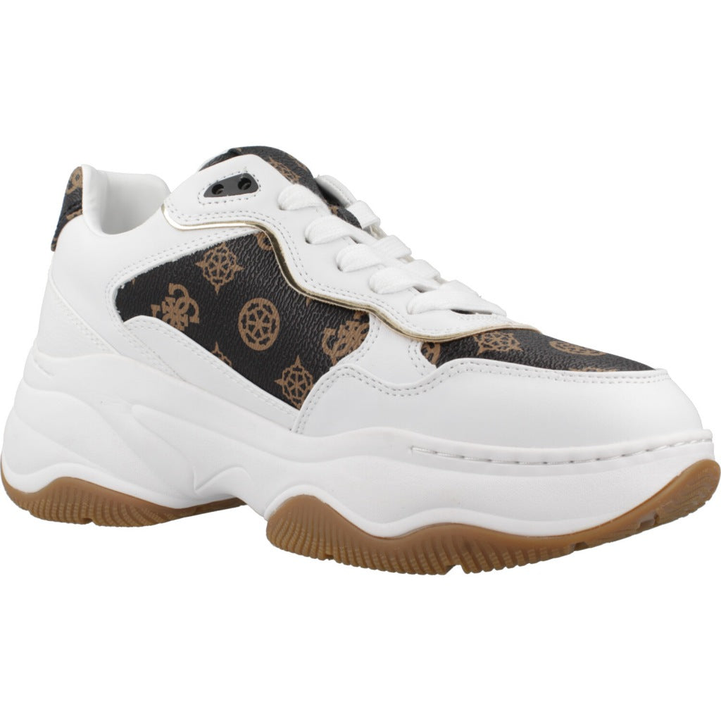 Presentamos las zapatillas GUESS, un modelo que combina un diseño moderno y cómodo. Con una base blanca y detalles en negro y dorado, ofrecen un estilo único. Su fabricación de materiales de alta calidad asegura durabilidad y confort. Ideales para quienes buscan completar su look con un toque de sofisticación y frescura en cada paso.